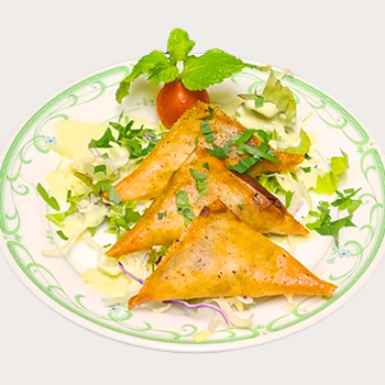 春巻の皮に野菜や肉を包みスパイスで味付けした料理